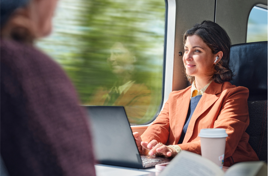 Med en Erhvervsaftale hos DSB kan du og dine kolleger bruge jeres rejsetid, som I vil: arbejde igennem, lade op, give tankerne frit spil – eller give hovedet ro.