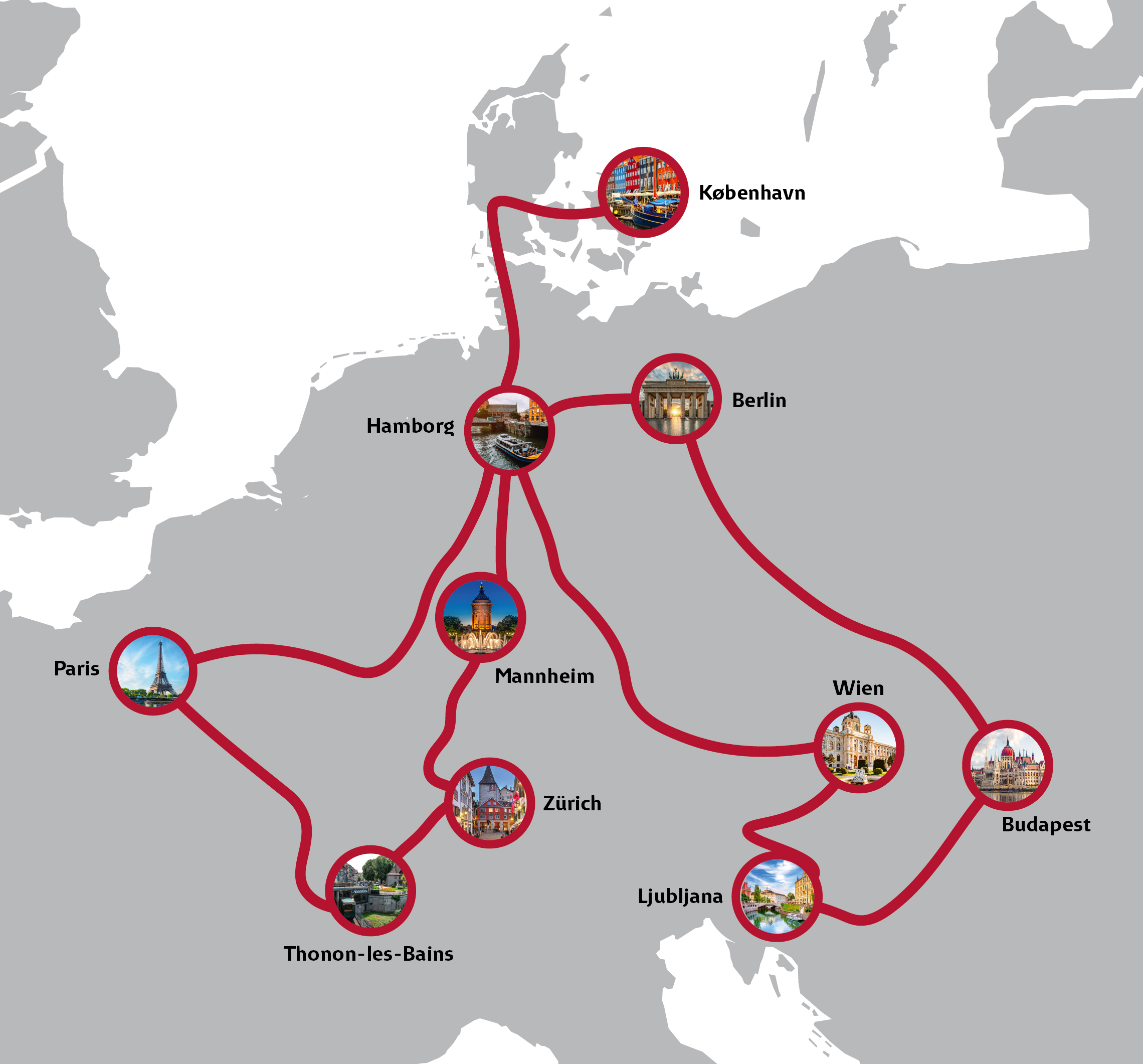 Med toget kan du komme til 33 europæiske lande og over 30.000 destinationer. Så hop på toget, og udforsk alle Europas store og små perler i dit eget tempo.