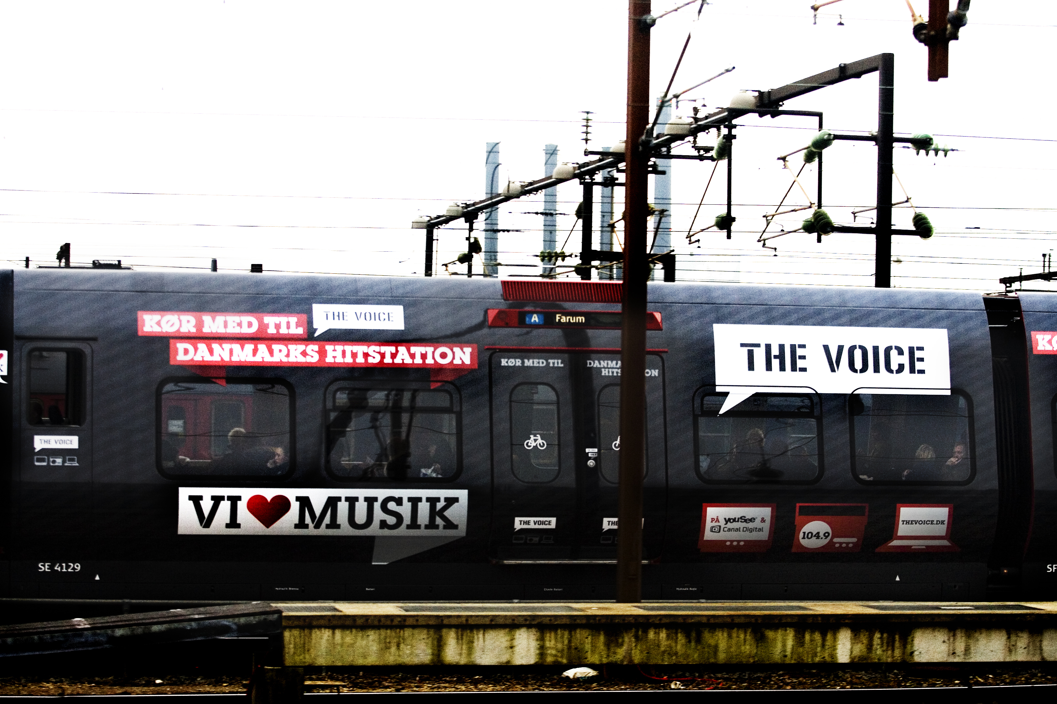 De tre første fredage i december sender The Voice live radio fra det tog, der samtidig kører med reklame for The Voice udenpå.